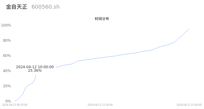 600560金自天正2024年04月12日成交7.36万手,成交金额1.15亿元,相较昨日放量1.15万手,换手率3.29%,成交清淡。