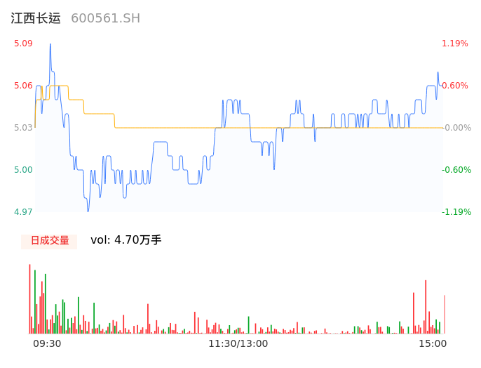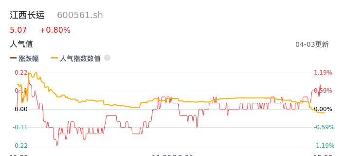 04月03日,江西长运收报5.07,股价涨幅0.80%,成交金额2365.20万元,换手率1.65%。