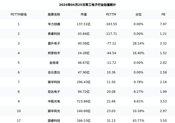 从估值角度看:国睿科技最新市盈率PETTM为31.13,在行业内排名12/60,处于43.77分位。