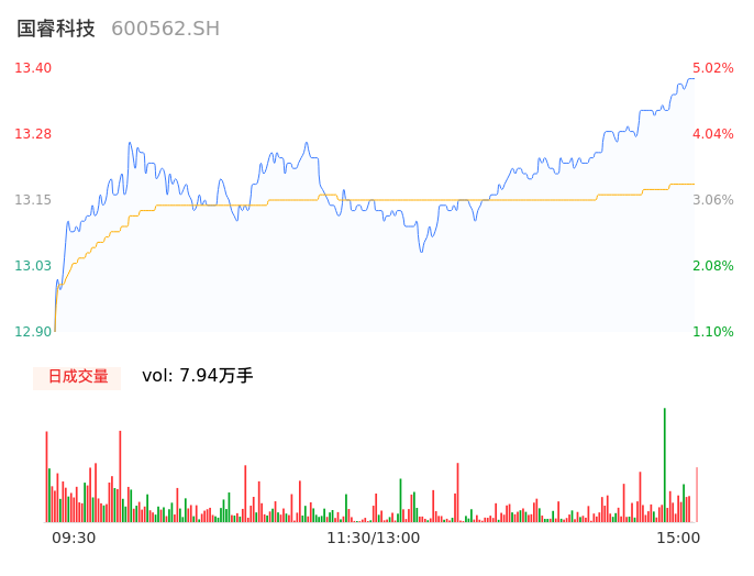 04月17日,国睿科技收报13.40,股价涨幅5.02%,成交金额1.05亿元,换手率0.65%。