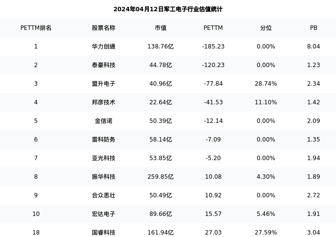 从估值角度看:国睿科技最新市盈率PETTM为27.03,在行业内排名11/60,处于27.59分位。