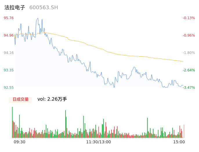 04月22日,法拉电子收报92.66,股价涨幅-3.36%,成交金额2.12亿元,换手率1.01%。