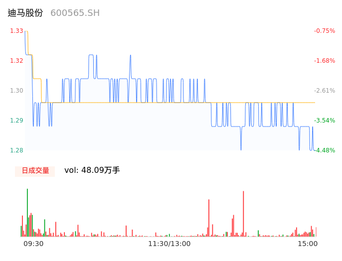 04月08日,迪马股份收报1.28,股价涨幅-4.48%,成交金额6245.43万元,换手率1.93%。