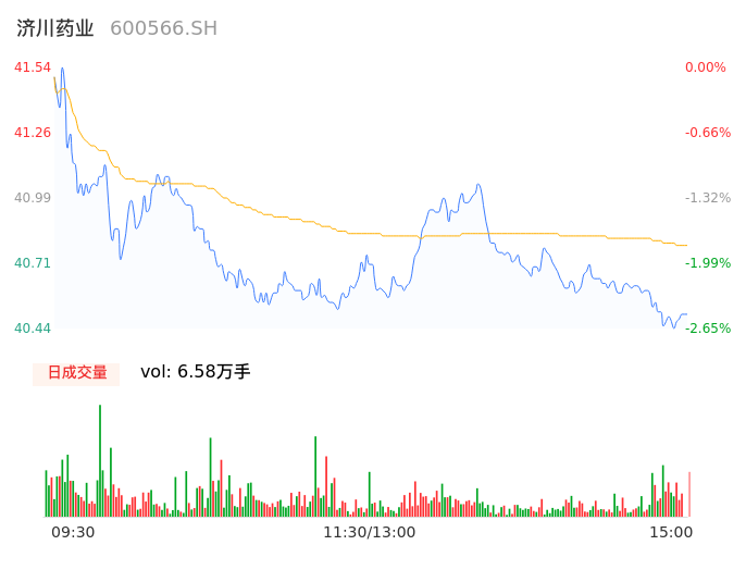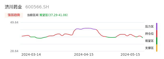 05月15日,济川药业收报40.51,股价涨幅-2.48%,成交金额2.69亿元,换手率0.72%。