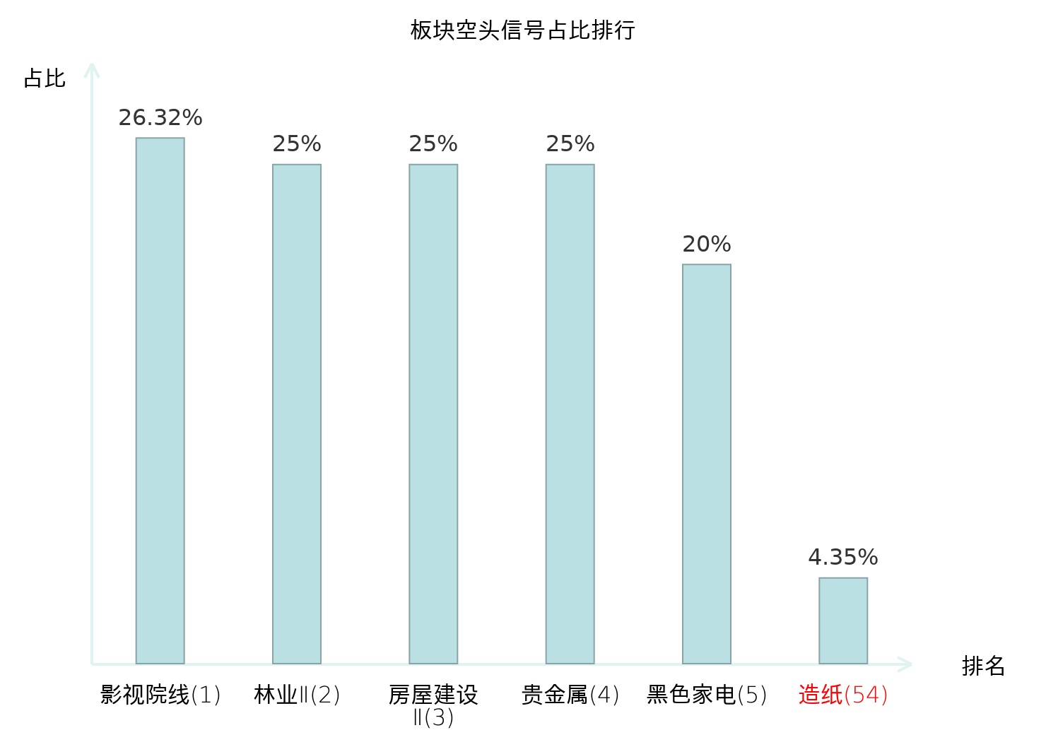 全市场所有行业板块中主力空头信号占比排名中,影视院线板块位居第一。普钢板块名次提升最快,较昨日上升115位。