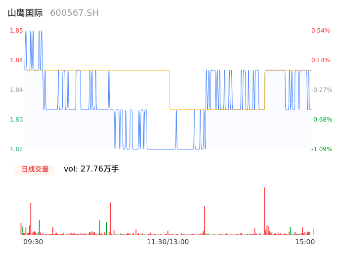 04月30日,山鹰国际收报1.84,股价涨幅0.00%,成交金额5095.39万元,换手率0.62%。