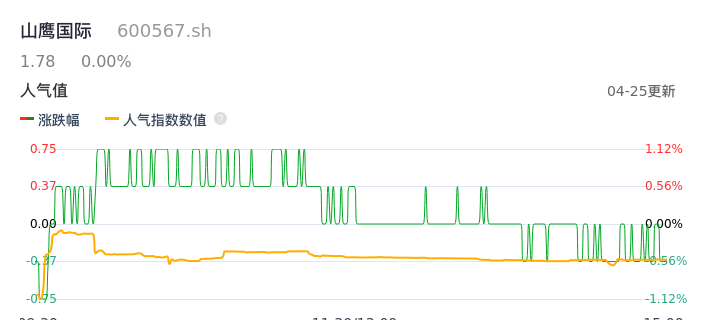 04月25日,山鹰国际收报1.78,股价涨幅0.00%,成交金额5684.51万元,换手率0.71%。