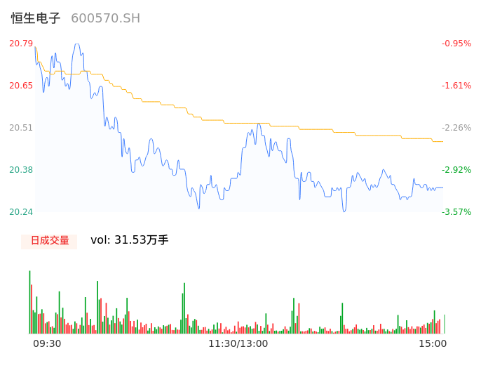 04月19日,恒生电子收报20.31,股价涨幅-3.24%,成交金额6.45亿元,换手率1.66%。