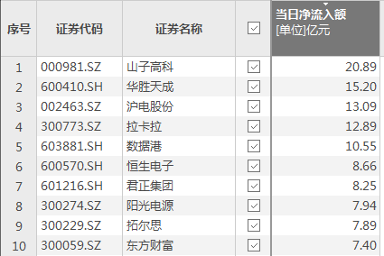 资金风向标 | 山子高科获资金净流入20.89亿元