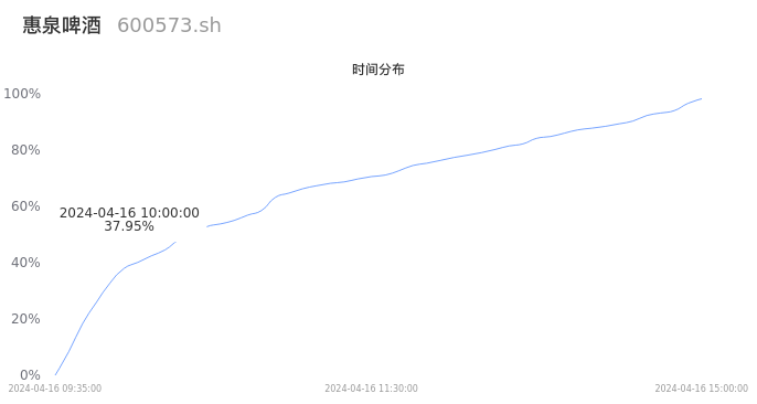 600573惠泉啤酒2024年04月16日成交6.58万手,成交金额5652.62万元,相较昨日缩量1.48万手,换手率2.63%,成交清淡。