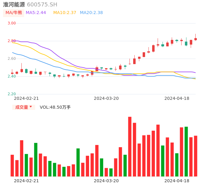 04月18日,淮河能源收报2.83,股价涨幅0.71%,成交金额1.38亿元,换手率1.25%。