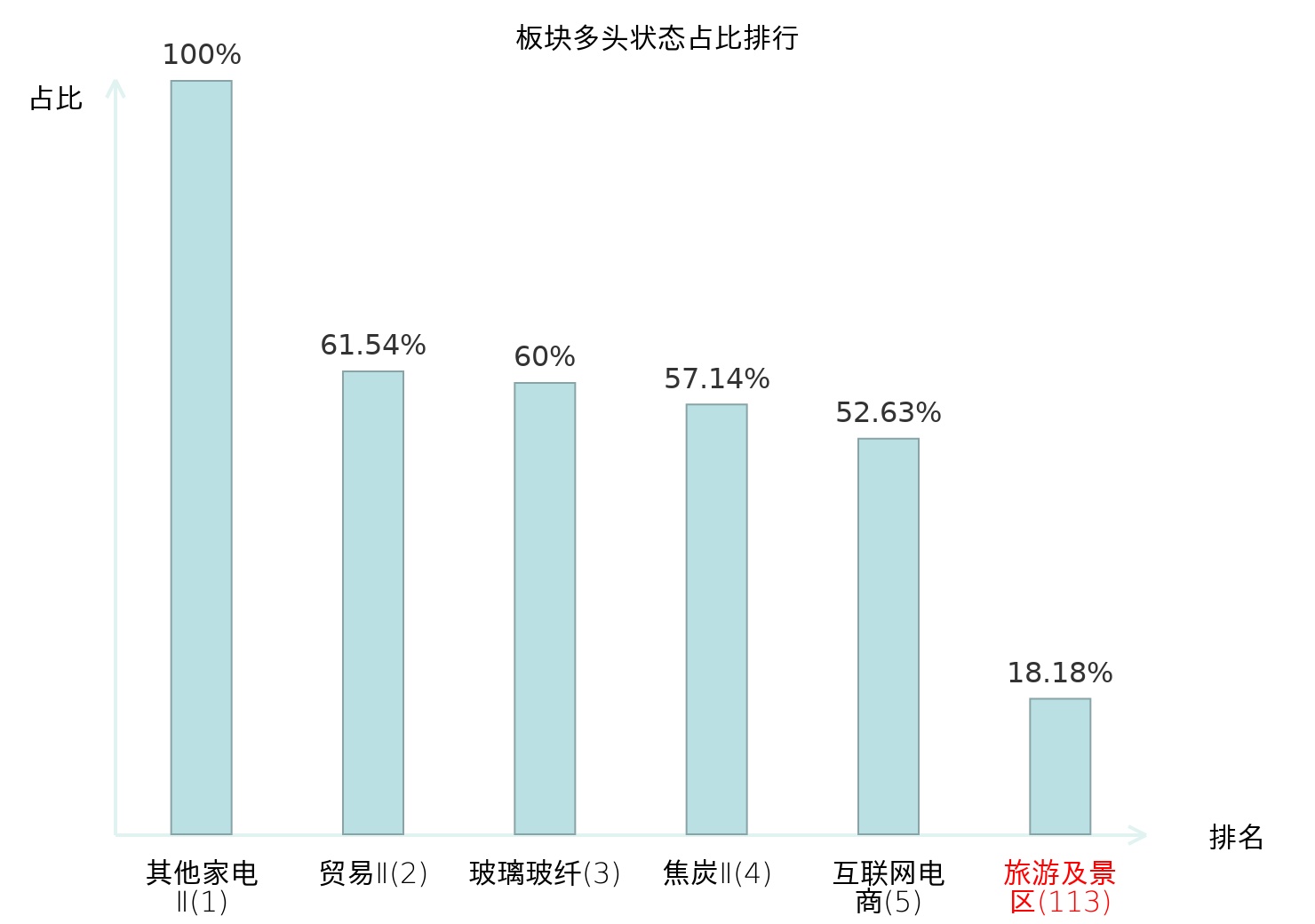 全市场所有行业板块中主力多头状态占比排名中,其他家电Ⅱ板块位居第一。教育板块名次提升最快,较昨日上升50位。