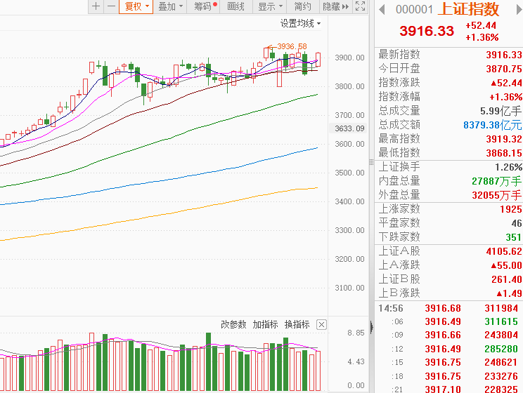 大盘分析及后市展望:全天看,A股市场迎来强势反弹,三大指数全线收涨,沪指成功收复3900点整数关口并突破多条短期均线压制。市场呈现高开高走格局,开盘后便展现强劲上行动能,随着指数稳步攀升,市场交投情绪显著回暖,板块轮动节奏加快,赚钱效应明显改善。特别值得注意的是,消费电子板块在苹果新品发布周期临近及供应链订单回暖预期的双重推动下表现亮眼,从屏幕模组到精密零部件企业均有所表现,成为今日市场中的亮点。近两日市场连续反弹,一方面受外围市场回暖带动,国际层面主要经济体经贸对话渠道重新开启;二是国内重要会议临近强化了政策预期。