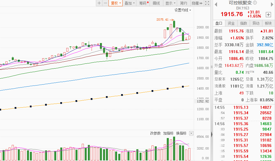事件驱动:可控核聚变概念震荡走强,安泰科技反包涨停,斯瑞新材、国机重装、应流股份、精达股份、中国核建、东方电气跟涨。消息面上,近日,全球首个国际原子能机构(IAEA)聚变能研究与培训协作中心落地四川省成都市,标志着中国在聚变能源领域的国际地位与影响力显著跃升。国金证券研报称,国有和社会资本的加速涌入也推动了聚变能从实验室走向商业化的进程,聚变堆有望撬动万亿元蓝海市场。