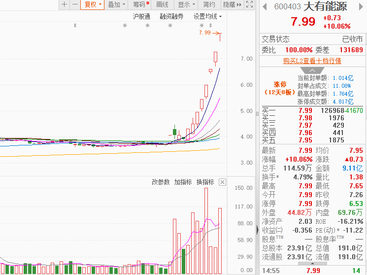市场情绪:市场热点轮番活跃,全市场超4600只个股上涨。今日共78股涨停,连板股总数12只,19股封板未遂,封板率为80%(不含ST股、退市股)。焦点股方面,大有能源晋级6连板。部分高位股获资金抱团强者恒强,合肥城建12天7板、华建集团13天7板。此外,燃气叠加芯片概念的先锋电子走出3连板。