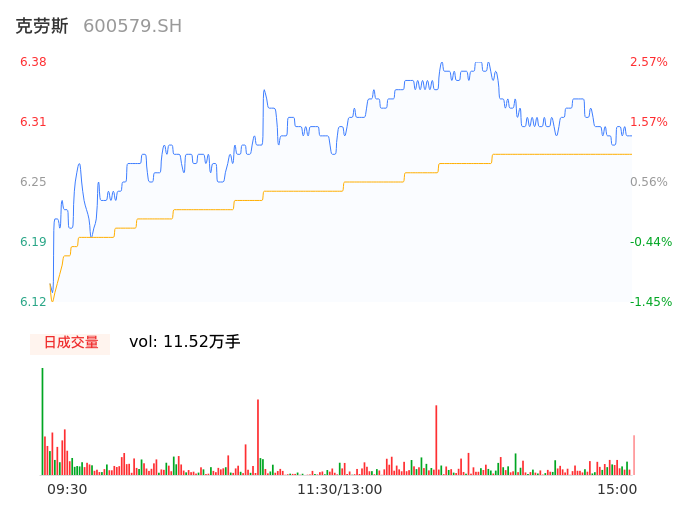 04月11日,克劳斯收报6.30,股价涨幅1.29%,成交金额7237.47万元,换手率2.32%。