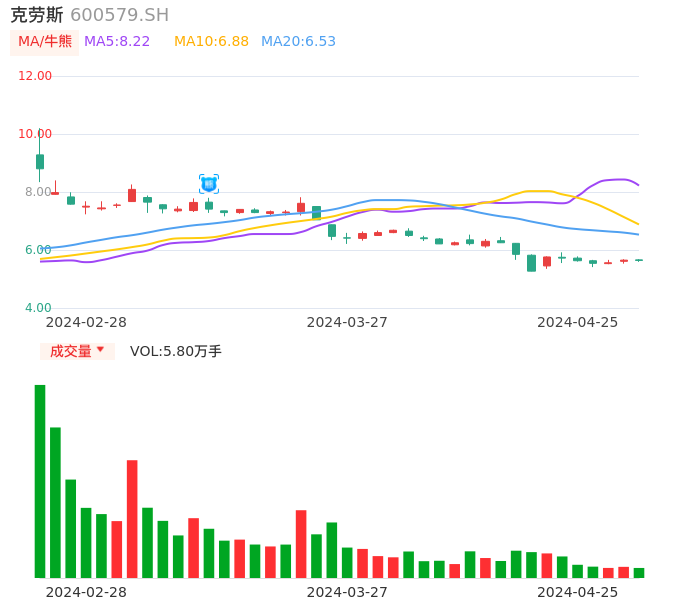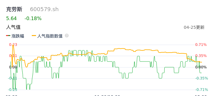 04月25日,克劳斯收报5.64,股价涨幅-0.18%,成交金额3273.21万元,换手率1.17%。
