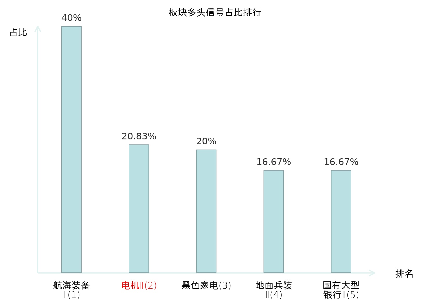 全市场所有行业板块中主力多头信号占比排名中,航海装备Ⅱ板块位居第一。国有大型银行Ⅱ板块名次提升最快,较昨日上升119位。