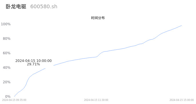 600580卧龙电驱2024年04月15日成交61.74万手,成交金额8.68亿元,相较昨日放量12.79万手,换手率4.72%,成交清淡。