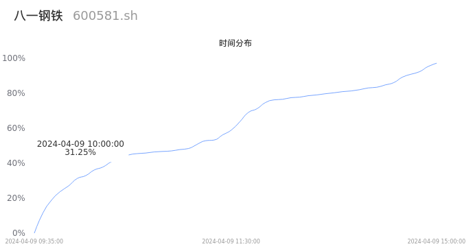 600581八一钢铁2024年04月09日成交24.65万手,成交金额8090.54万元,相较昨日缩量12.90万手,换手率1.61%,成交清淡。