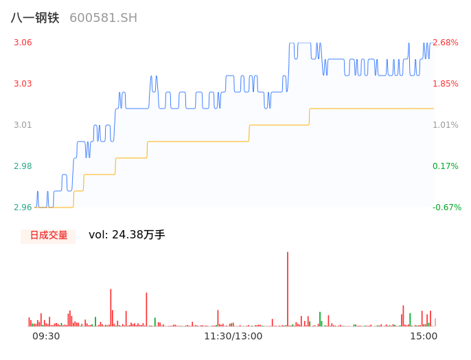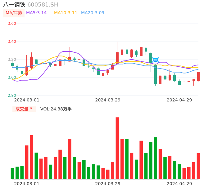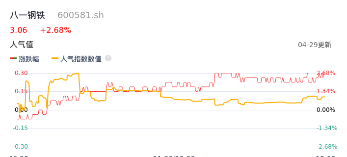 04月29日,八一钢铁收报3.06,股价涨幅2.68%,成交金额7372.81万元,换手率1.59%。