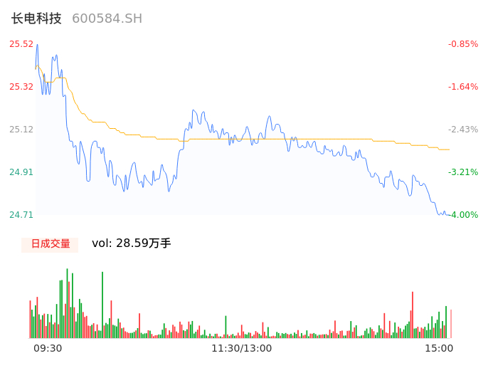 04月16日,长电科技收报24.71,股价涨幅-4.00%,成交金额7.15亿元,换手率1.60%。