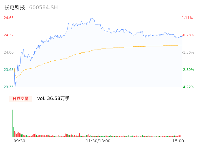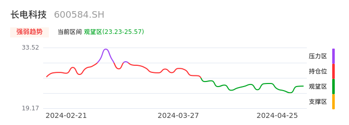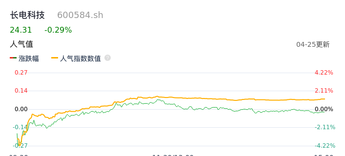 04月25日,长电科技收报24.31,股价涨幅-0.29%,成交金额8.83亿元,换手率2.04%。