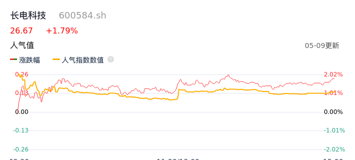 05月09日,长电科技收报26.67,股价涨幅1.79%,成交金额5.49亿元,换手率1.15%。