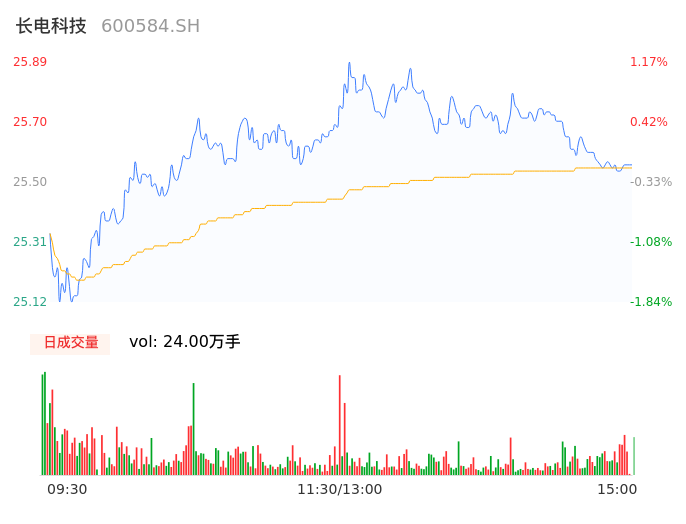 04月18日,长电科技收报25.55,股价涨幅-0.16%,成交金额6.14亿元,换手率1.34%。