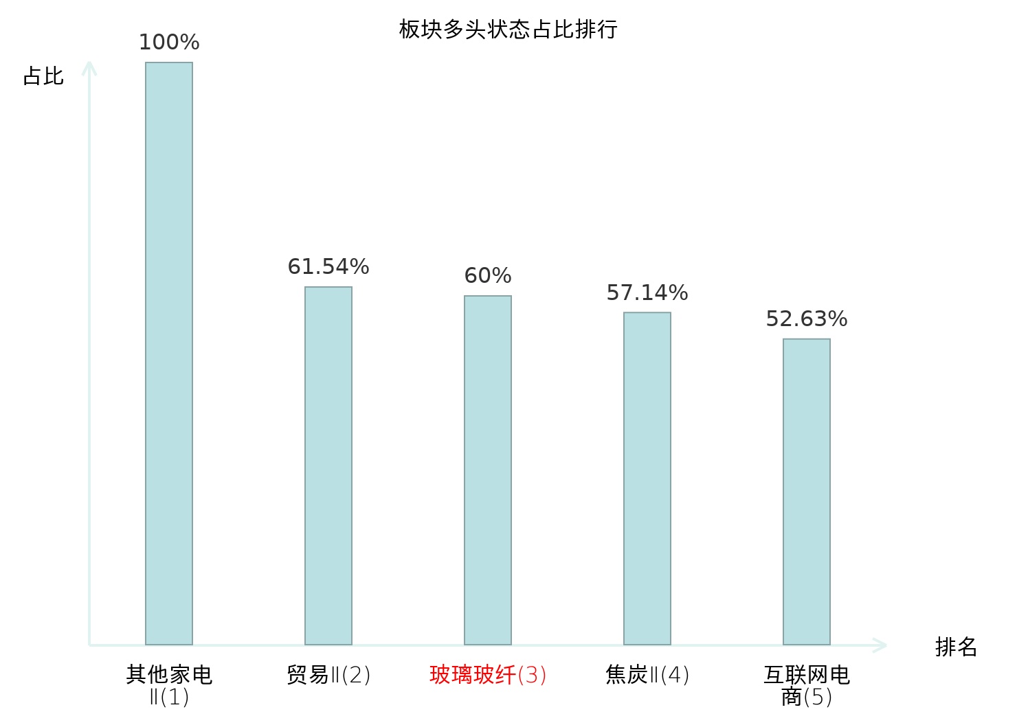 全市场所有行业板块中主力多头状态占比排名中,其他家电Ⅱ板块位居第一。教育板块名次提升最快,较昨日上升50位。