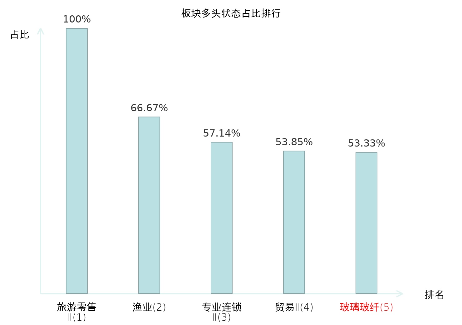 从主力宝信号数据分析,金晶科技所属的玻璃玻纤板块中共有8只股票处于主力多头状态,主力多头状态占比在全行业中排名第5位,较昨日一致。较高的排名表明主力对于该板块整体看多意愿较强,稳定排名反映了主力对该板块的持续关注。全市场所有行业板块中主力多头状态占比排名中,旅游零售Ⅱ板块位居第一;农业综合Ⅱ板块名次提升最快,较昨日上升83位。这些变动揭示了不同行业间主力资金偏好的变化,为投资者提供了关于市场情绪和潜在投资机会的重要线索。