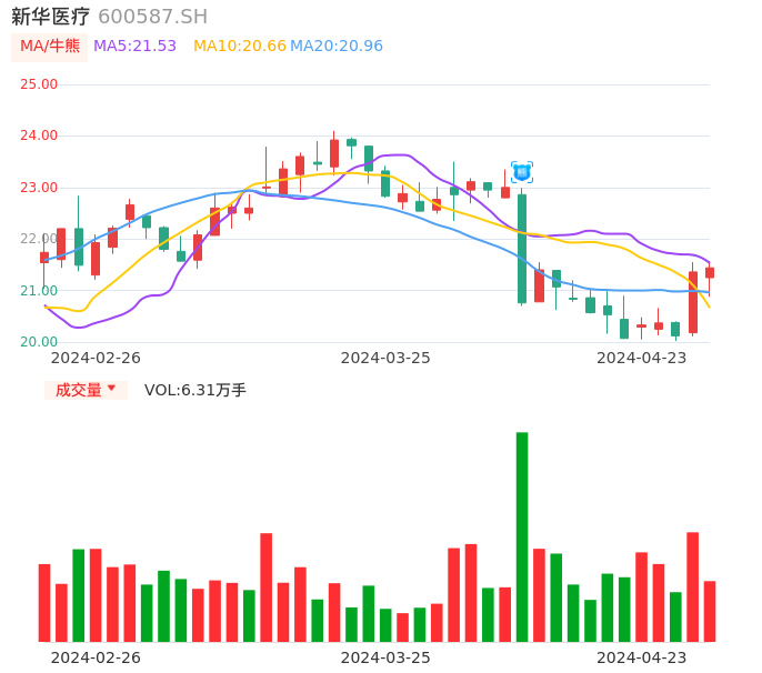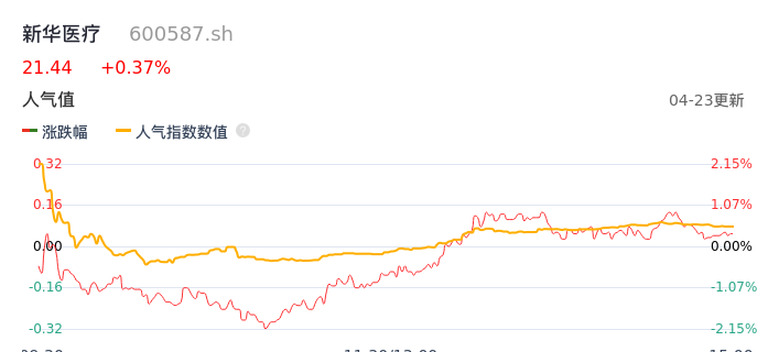 04月23日,新华医疗收报21.44,股价涨幅0.37%,成交金额1.34亿元,换手率1.42%。