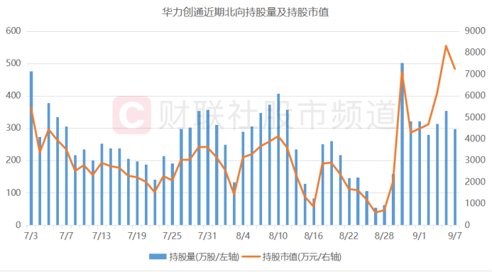 注:北向资金近期对华力创通持股量及持股市值数据(截至9月7日数据)