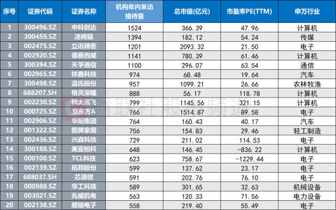 注:年内机构调研量居前的华为概念股(截至9月8日数据)