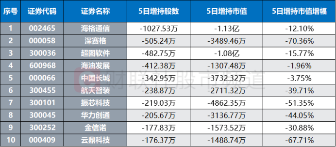 注:近日获北向增持/减持居前的卫星导航概念股(截至9月7日数据)