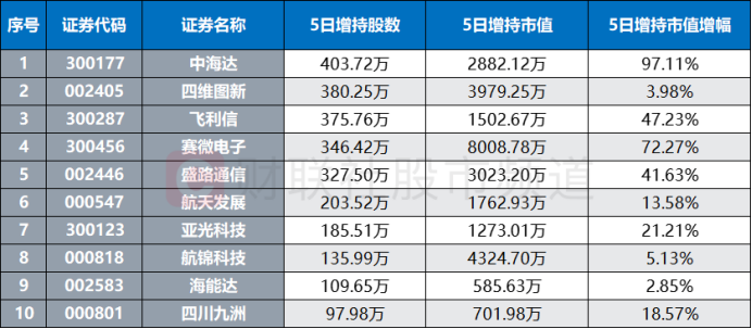 此外,北向资金近日也减持了这只人气龙头。截至9月7日数据,华力创通北向持股量近296.86万股,较之8月30日(502.53万股)下降近69.3%,若以持股市值统计,因其近日股价持续上涨,北向持股市值仍增长了近122亿元。其余卫星导航概念股方面,同样以持股量数据统计,中海达、四维图新、飞利信等股获重点加仓,但海格通信、深赛格、超图软件等股也遭大幅减持。