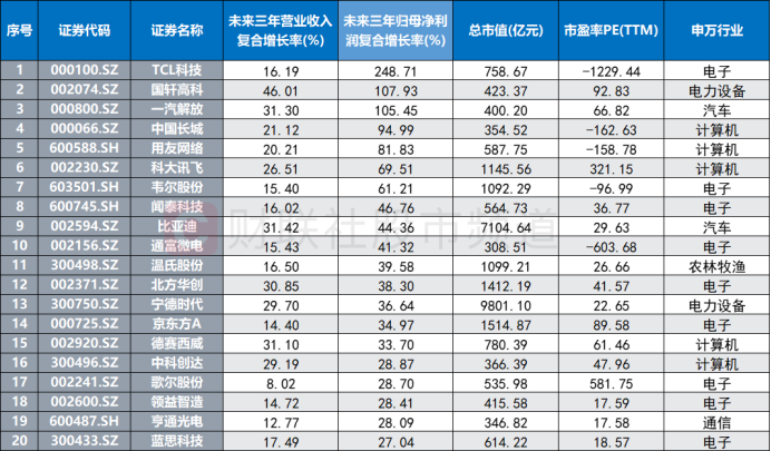 注:未来三年归母净利润复合增长率居前且总市值大于300亿元的华为概念股(截至9月8日数据)