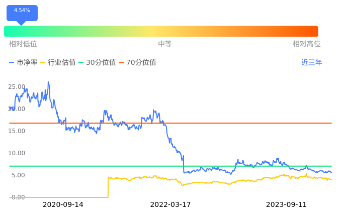用友网络当前市净率PB为5.70,在所属的软件开发中,市净率PB排93,前五名分别为中电兴发市净率1.07、天融信市净率1.18、理工能科市净率1.21、天源迪科市净率1.87、高新兴市净率2.13。用友网络当前市净率PB为5.69,超过近3年4.54%的历史数据。