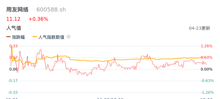 04月23日,用友网络收报11.12,股价涨幅0.36%,成交金额2.06亿元,换手率0.54%。