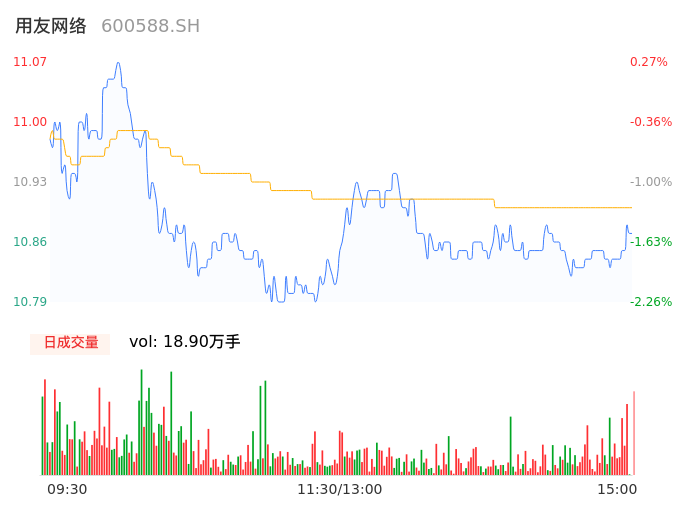 04月19日,用友网络收报10.87,股价涨幅-1.54%,成交金额2.06亿元,换手率0.55%。