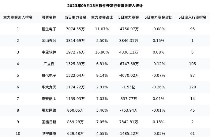 从主力资金流向来看,软件开发行业今日主力资金流入59.06亿元,在所有申万二级行业中排名:14/131。