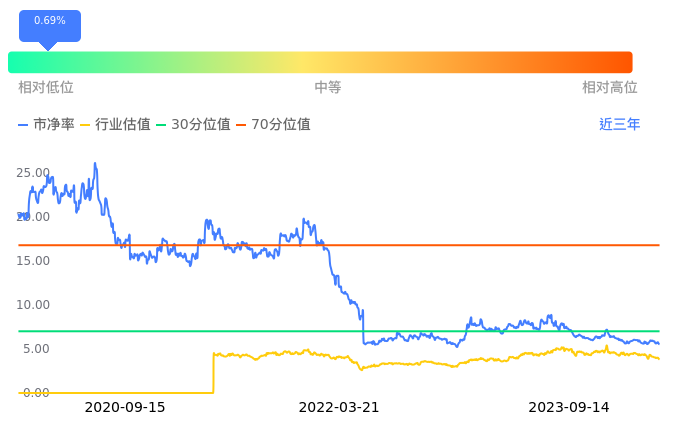 用友网络当前市净率PB为5.52,在所属的软件开发中,市净率PB排92,前五名分别为中电兴发市净率1.03、天融信市净率1.15、理工能科市净率1.19、天源迪科市净率1.70、恒华科技市净率2.04。用友网络当前市净率PB为5.51,超过近3年0.69%的历史数据。