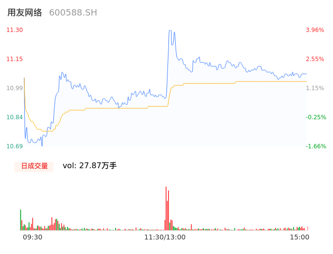 04月22日,用友网络收报11.08,股价涨幅1.93%,成交金额3.07亿元,换手率0.82%。