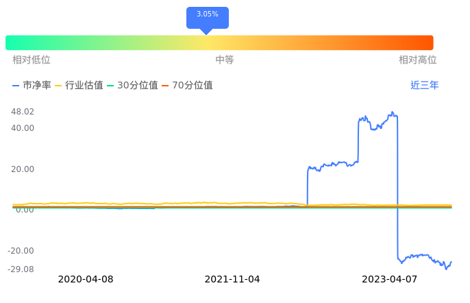2023年04月10日,ST榕泰上涨2.53%收于2.43,今日成交金额3817.25万元。下文将从市盈率PETTM、市净率PB、市现率3个角度去分析公司估值情况。
