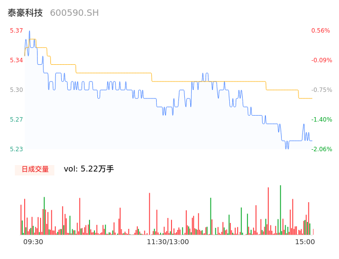 04月12日,泰豪科技收报5.25,股价涨幅-1.69%,成交金额2762.51万元,换手率0.62%。