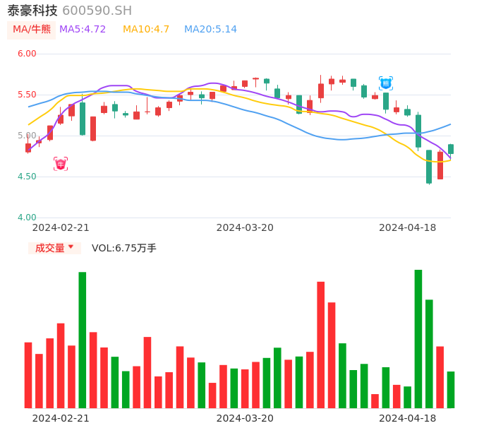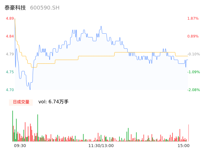 04月18日,泰豪科技收报4.78,股价涨幅-0.42%,成交金额3234.16万元,换手率0.80%。