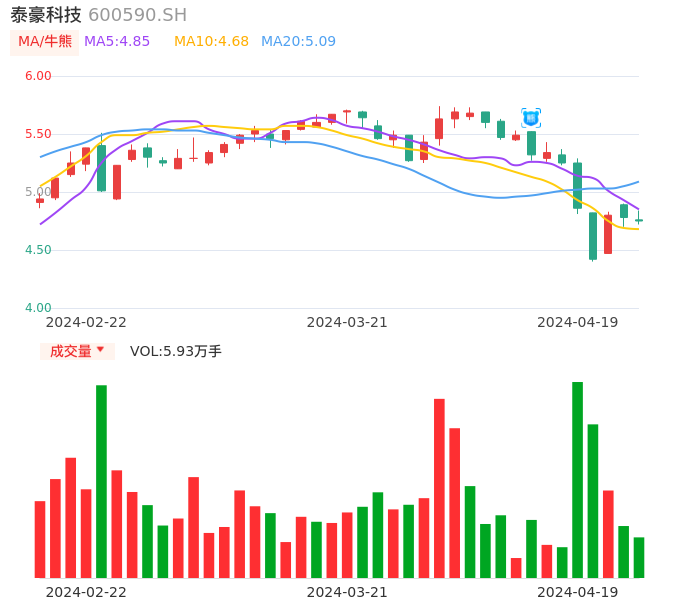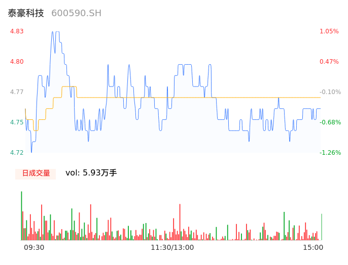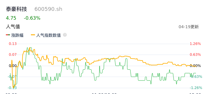 04月19日,泰豪科技收报4.75,股价涨幅-0.63%,成交金额2826.36万元,换手率0.70%。