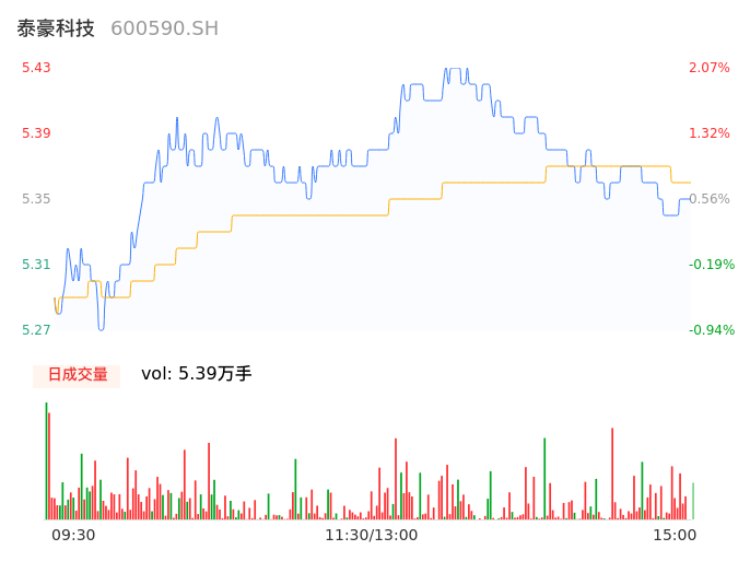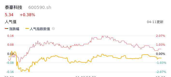 04月11日,泰豪科技收报5.34,股价涨幅0.38%,成交金额2889.93万元,换手率0.64%。