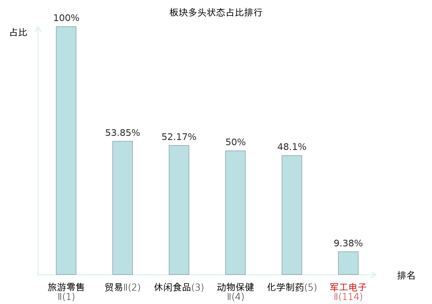 从主力宝信号数据分析,泰豪科技所属的军工电子Ⅱ板块中共有6只股票处于主力多头状态,主力多头状态占比在全行业中排名第114位,与昨日保持一致。较高的排名表明主力对该板块整体看多意愿较强。全市场所有行业板块中主力多头状态占比排名中,旅游零售Ⅱ板块位居第一。白酒Ⅱ板块名次提升最快,较昨日上升了47位。这些变动反映了主力资金在不同行业间的偏好变化,为投资者提供了观察市场趋势和主力态度的重要线索。