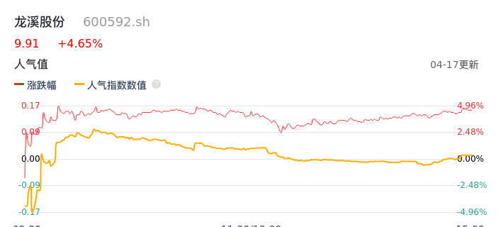 04月17日,龙溪股份收报9.91,股价涨幅4.65%,成交金额1.87亿元,换手率4.77%。